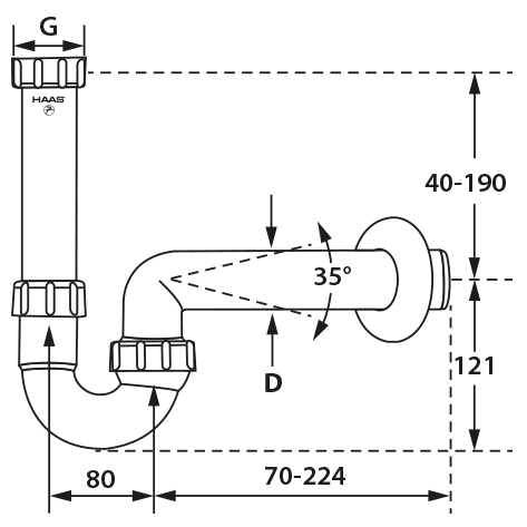 Kugelgelenk-Siphon 1 1/4” – DN 40, Anspruchsvolles Design nach DIN EN 274